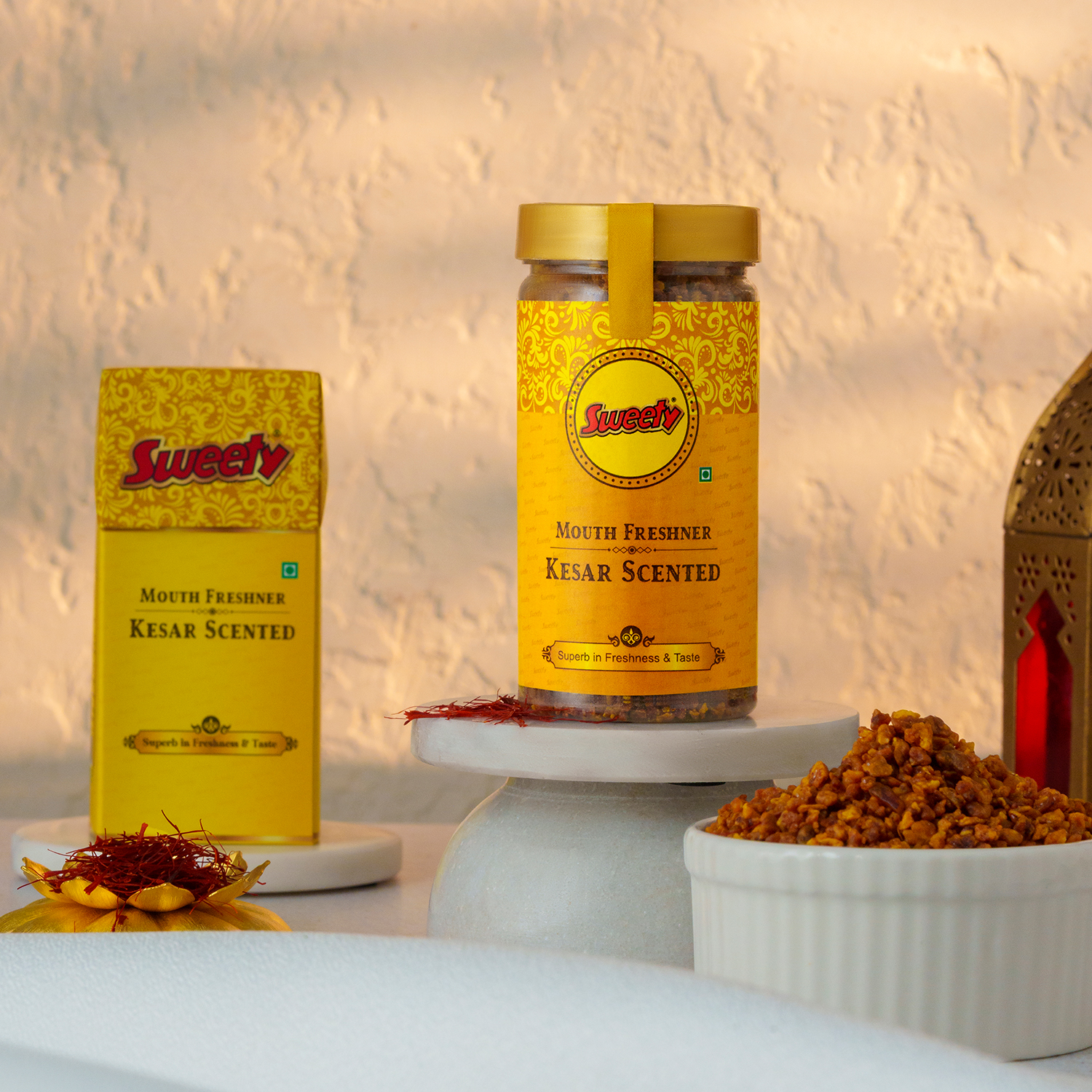 - Sweety Kesar Flavoured Mouth Freshener with Dry Dates Superior Taste in Every Bite: Made with love, Sweety Kesar Scented Mouth Freshener with Dry Dates is a treat for the post-meal indulgence. Mixing 100% authentic dry dates with fragrant cardamom and a subtle cooling sensation of menthol gives it a flavor that is as fulfilling as it is refreshing. A Kesar-scented aftertaste makes this mixture bring together authentic Indian flavors in a sweet and savory mouth mix.