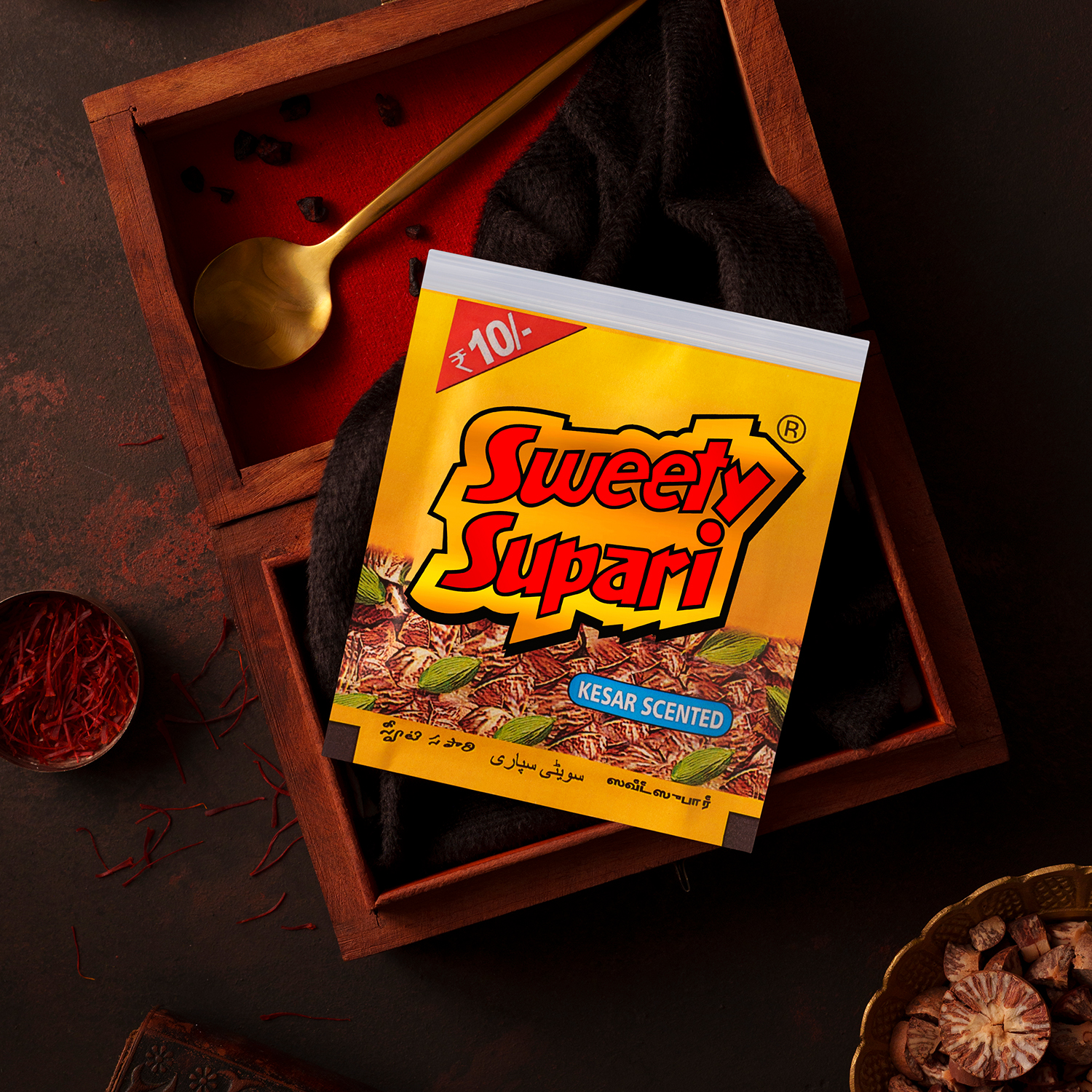 the royal taste of Sweety Supari Kesar Scented, a luxurious blend of sweetness, freshness, and the rich aroma of saffron. Crafted with care using hand picked ingredients, this supari delivers a refreshing experience that lingers long after every bite.
